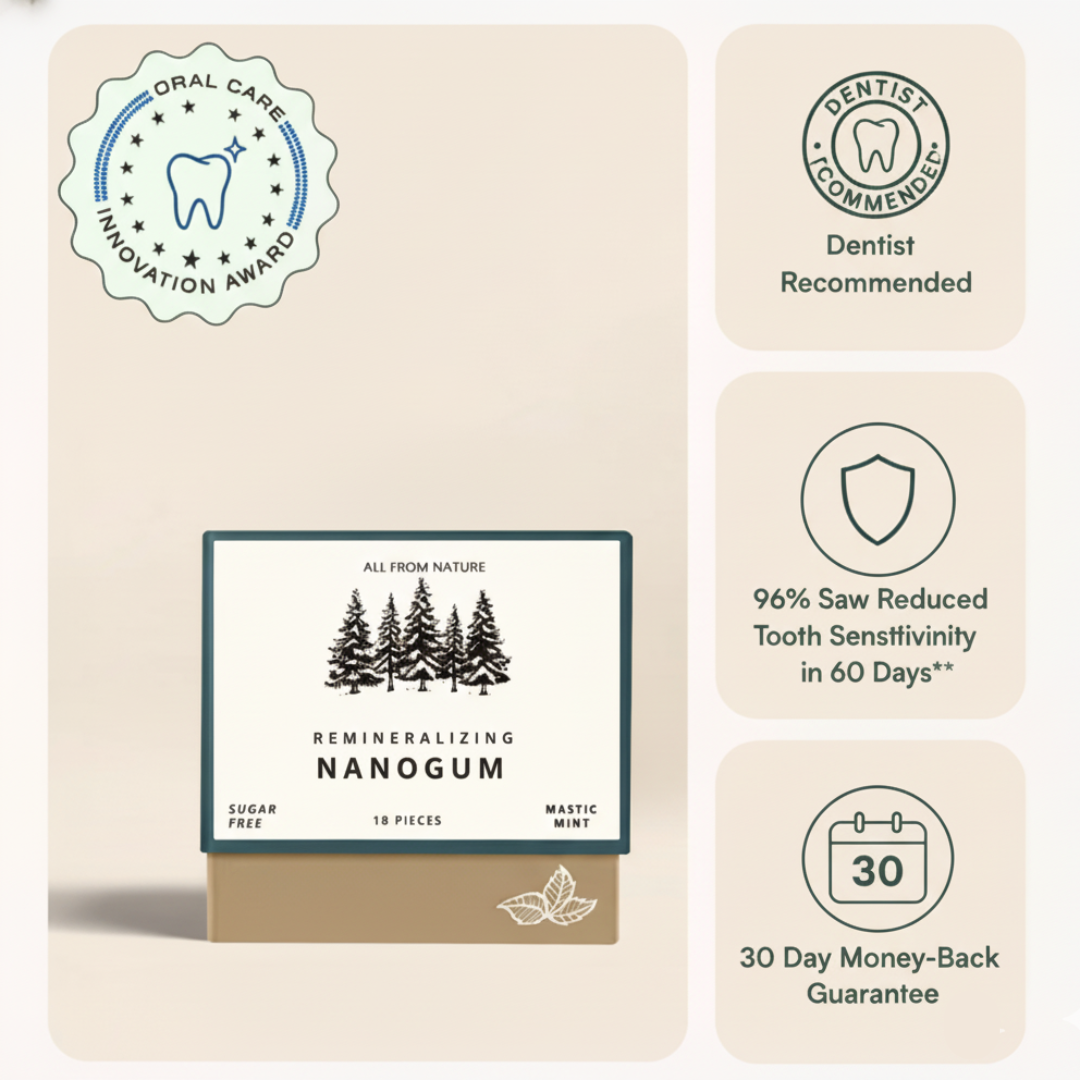 NanoGum is the first professional dental tool designed to physically rebuild your enamel and reverse sensitivity while you chew.